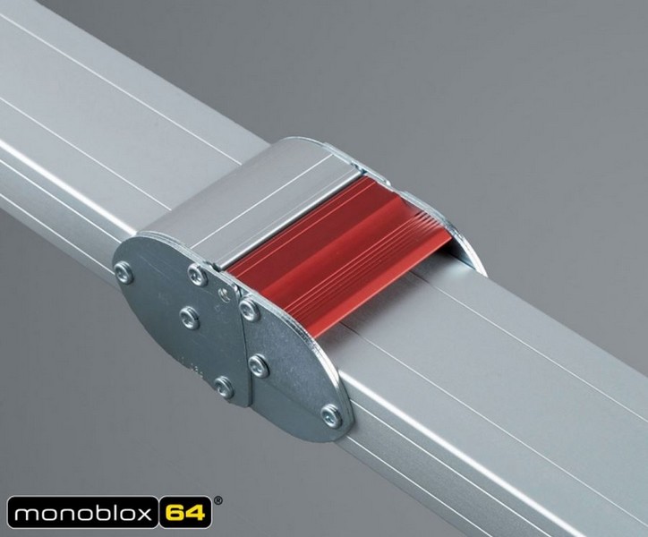 MONOBLOX ist daher ideal für die Vermietung. Stabilität, Gewicht und Transportvolumen sind optimiert und aufeinander abgestimmt. Um für jede Größenklasse die maximale Stabilität und bestes Packmaß zu erhalten wurden mit MONOBLOX 32 und MONOBLOX 64 zwei Profilarten aus einer gehärteten Aluminiumlegierung entwickelt.