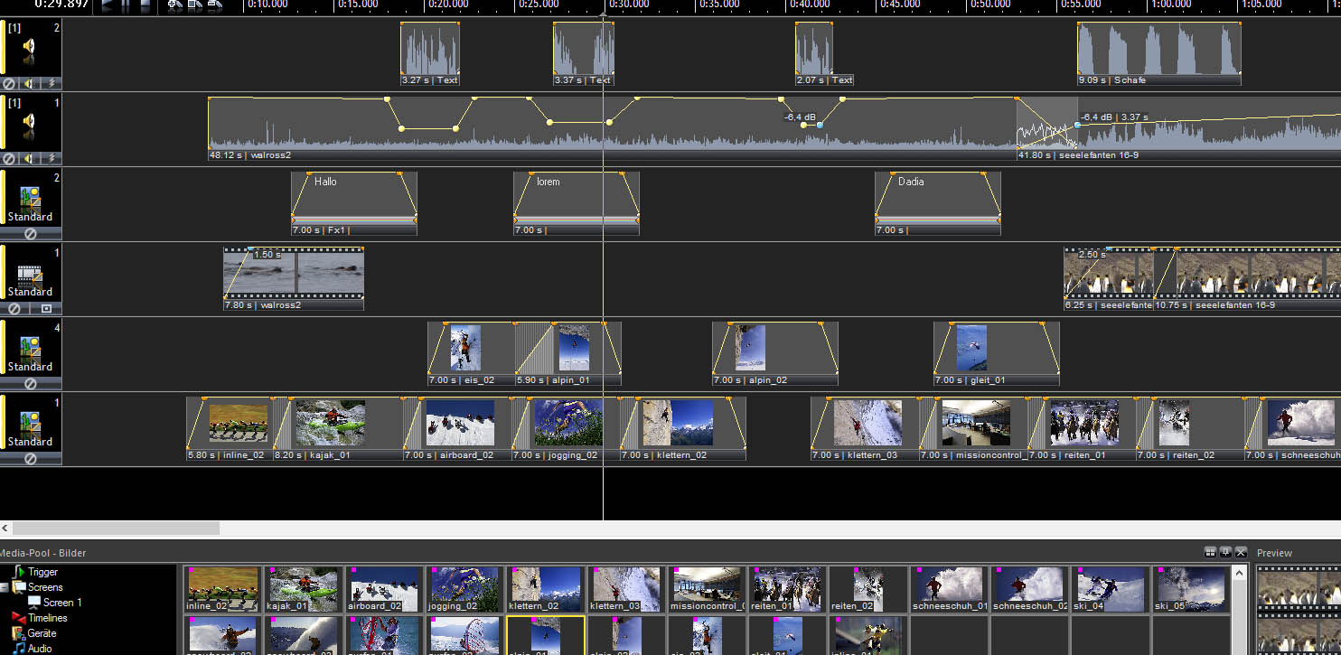 werden die unterschiedlichen Medien als Objekte in der gewünschten zeitlichen Abfolge angeordnet.